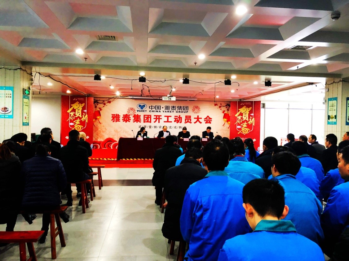 2018年2月25日上午8:30,雅泰集團在公司食堂隆重舉行開工動員大會,集團公司總裁班子成員、各部門、各車間員工共計500多人參加了動員大會。