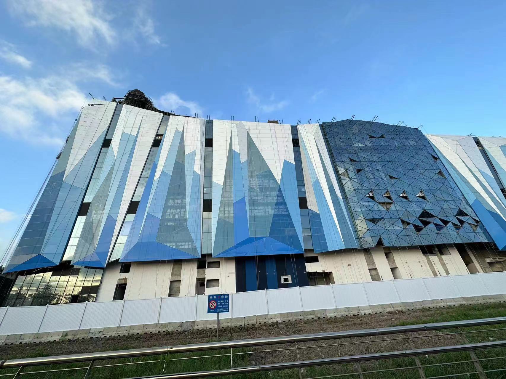 雅泰集團(tuán)承建上海臨港冰雪北區(qū)幕墻整體制作及建設(shè),本項(xiàng)目為菠蘿面異形設(shè)計,充滿現(xiàn)代感的外立面,把冰雪世界的晶瑩閃耀充分展現(xiàn)。與之相匹配的鋁幕墻板的結(jié)構(gòu)復(fù)雜,加工難度較大,全異型、超大、超寬、超長鋁板,多數(shù)板長6-7米,且角度尖銳精度要求非常嚴(yán)格。面對高難度重點(diǎn)工程,雅泰集團(tuán)快速成立項(xiàng)目攻艱突擊隊,選調(diào)管理、設(shè)計、加工精英,結(jié)合理解冰雪項(xiàng)目設(shè)計特點(diǎn),最大程度達(dá)成設(shè)計師初衷。加工團(tuán)隊對異型板件進(jìn)行優(yōu)化拆解,分件加工,再進(jìn)行一體化工廠組裝集成。同時集團(tuán)擁有行業(yè)內(nèi)體量、規(guī)模均在前列,全長700米的進(jìn)口先進(jìn)噴涂設(shè)備,充分滿足超大、超長、超寬鋁板的氟碳漆面噴涂完成。