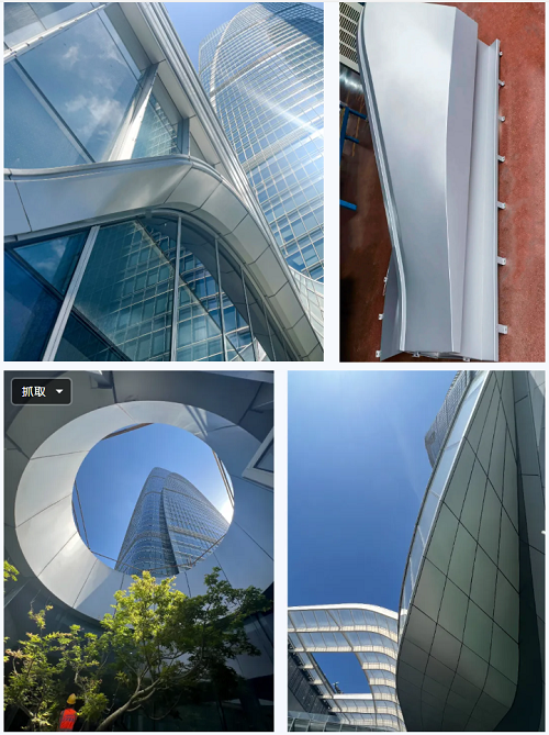 該項目幕墻系統(tǒng)繁多,施工難度大,制造工藝要求極高。南裙樓幕墻共計27個幕墻系統(tǒng),雅泰集團負責其中的金屬幕墻供材,幕墻構(gòu)造上選擇的是框架式鋁板幕墻。