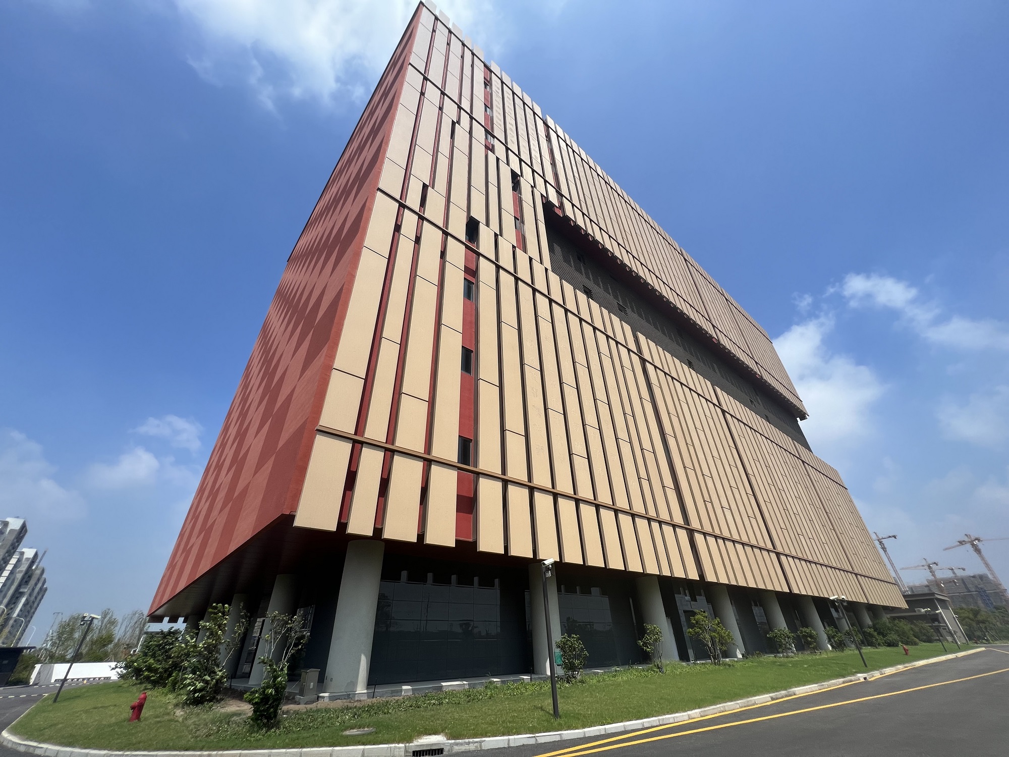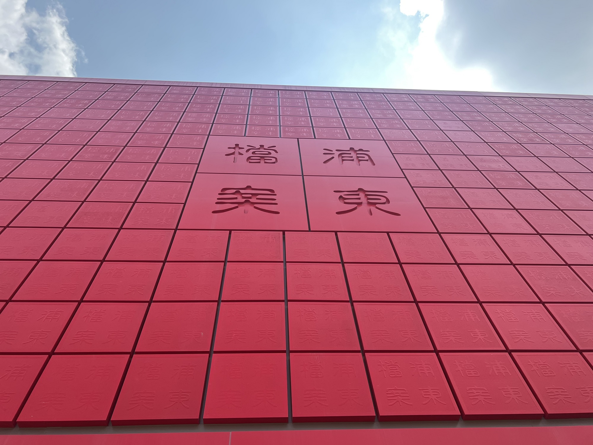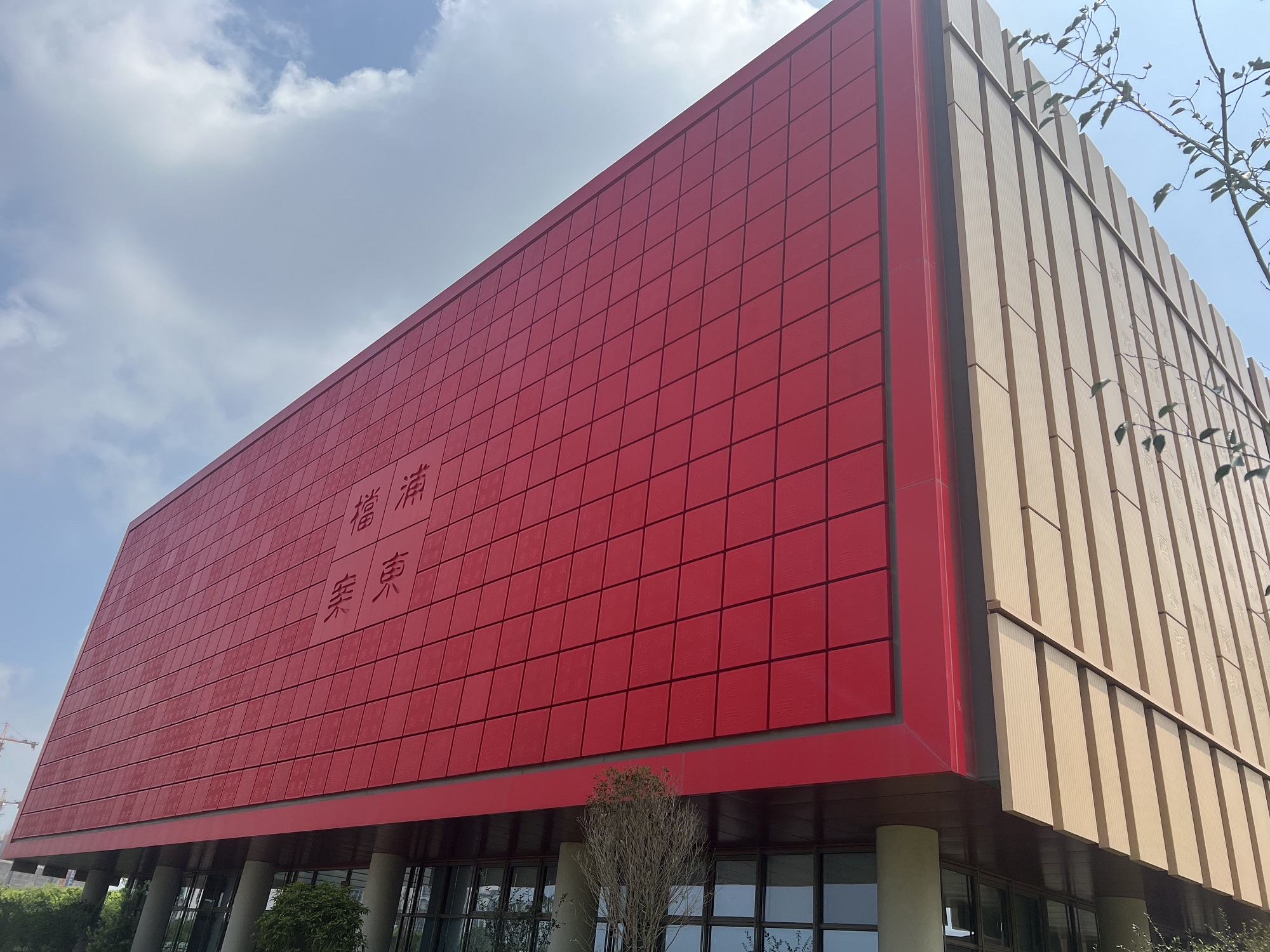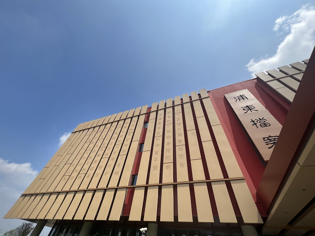當(dāng)走近位于百潤路100號的上海浦東新區(qū)檔案館時,瞬間被這座充滿中國文化底蘊,用一方方紅色印章與一片片原色竹簡,巧妙搭配的建筑深深吸引。