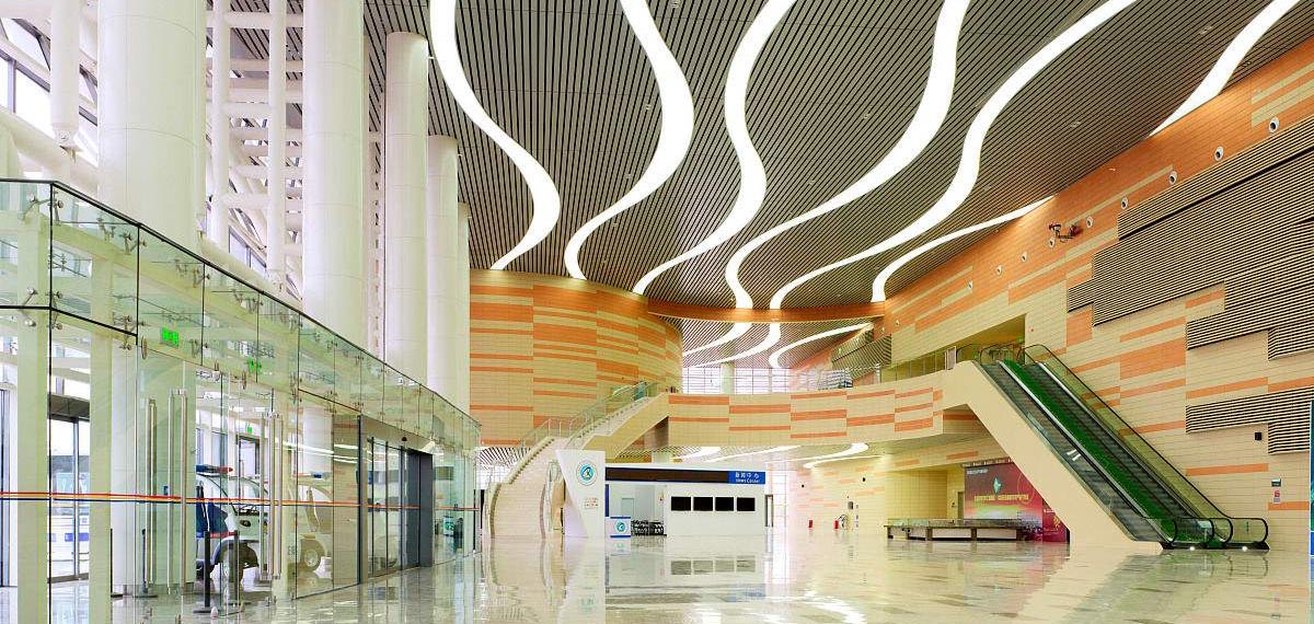 新疆克拉瑪依會展中心,1期(20,000平方米)和2期(40,000平方米)。1期會展廳可以被分隔為兩個(gè)各5,5000平方米的廳,公共大堂和廣場是室內(nèi)的,以響應(yīng)克拉瑪依寒冬氣候和盛行風(fēng)。1期的主大堂特意被做成超大尺寸以允許舉辦額外的超大展覽或?yàn)榱藵M足多個(gè)展覽的登記工作;1期大堂也通過人行天橋與2期連接。一個(gè)能夠容納超過300人的會議區(qū)域被置于大堂的上一層。